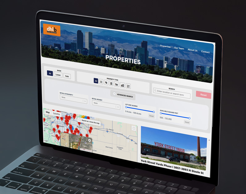 DHLB is one of the larger commercial property brokers in the Rocky Mountain Region. The new website is bright and clean with specially created video of some of their properties on the home page to give the user some excitement and a quick anchor to the industry. Special care was taken to write content targeting their demographic while keeping SEO at the forefront.